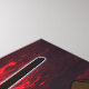 Eine allegorische Darstellung von Pessach. Mit einem roten Sonnenuntergang, der die Tragödie verkörpert, die die Ägypter in Kürze erleben würden, hält Moshe's Arm seine Mitarbeiter hinter Pyramiden zurück und verspricht den Exodus, der in jener Nacht stattfinden wird. Passen Sie Ihren eigenen Text an. Die blau-weißen Streifen von Moshe's Ärmel erinnern an den Gefängnisgarb jener, die in den Holocaust-Konzentrationslagern festgehalten wurden.