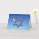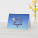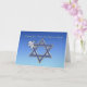 Pessach Gruß mit friedlicher Taube und Olivenzweig auf blauem Hintergrund mit silbertrimmtem Stern von David.