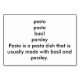 Pesto Basil Pasta Reading Flashcards für Erwachsen Tischnummer