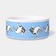 Viele französische Bulldogs auf einer Haustierschüssel. Die Schüssel hat keine Dane Größe!!! Für kleine Hundefreunde