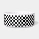 This pet bowl is shown in a cute black and white checkered print.