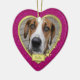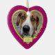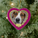Der Text und das Foto auf diesem Haushund Denkmal Weihnachtsschmuck (Herzform) sind leicht zu anpassen. Das hellrosa, simulierte Glitzer-Design und die simulierten goldenen Rahmen und Pfotendrucke machen es zu einem traditionellen Weihnachtsschmuck. Auf der Rückseite können Sie es mit dem Namen Ihres geliebten Haustiers anpassen, sowie die Gedenkversen und Lebensjahre anpassen. Um Text und Foto zu ändern, verwenden Sie die Optionen zum Personalisieren. Für umfangreichere Änderungen am Ornament, wie zum Beispiel das Ändern des Schriftartes, der Größe des Schriftartes, der Farbe des Schriftartes, der Textplatzierung, der Bildgröße und/oder der Bildplatzierung, verwenden Sie die Option Anpassen. Die Farben in diesem Ornament sind fuchsienrosa und goldfarben - perfekt für eine Hündin.