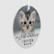 Personalisierte meine erste Weihnachtskatze Foto Ornament. Feiern Sie das erste Weihnachtsfest Ihres Kätzchens mit diesem charmanten, maßgefertigten Ornament, das die Freude an der ersten Urlaubssaison Ihres geliebten Katzen erfassen soll. Die Vorderseite bietet einen Platz für ein Foto Ihrer Kätzin mit der Phrase "Mein erstes Weihnachten" in eleganter Schrift-Kalligrafie, zusammen mit dem Namen Ihrer Katze und dem Geburtsjahr für eine personalisierte Touch. Auf der Rückseite gibt es Platz für ein zweites Foto gepaart mit "Frohe Weihnachten" in der gleichen delikaten Schrift, mit dem Namen und Jahr Ihrer Katze kleiner am unteren Rand dargestellt werden. Hellgraue Schneeflockenakzente tragen zu einer Touch Wintercharme bei, während ein weicher, weißer Omeleffekt am Ende jedes Fotos einen nahtlosen, raffinierten Übergang schafft. Sowohl Schriftart- als auch Schneeflockenfarben können individuell auf Ihren Stil abgestimmt werden. Dieser Sake ist perfekt für Katzenmütter, Katzenjunges oder jede felinenliebende Familie, die die erste Weihnachtszeit ihrer Kätzchen feiert, indem sie Ihrem Baum Wärme und Persönlichkeit verleiht oder als nachdenkliches Geschenk für Katzenliebhaber.