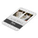 Personalisierter Gedenkmagnet mit zwei Tierfotos, Geburtsname und -jahresperiode. Die Einrichtung ist mit einem eleganten, grauen Pfotenmuster im Hintergrund dekoriert. Personalisieren Sie den Beispielnamen Oliver und Beispielbilder und Text durch Bilder, Namen und Details Ihres geliebten Tieres.