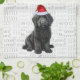 Hier ist ein lustiges Küchentuch oder ein ganzjähriges Handtuch. Eine bezaubernde Aquarellillustrierung eines niedlichen Labradoodle Santa Hundes, der mit einem lustigen Wortkunsthintergrund sitzt. Der Hund trägt eine Weihnachtsmannmütze.
