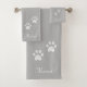 Pfoten und bearbeitbarer Namenstext auf hellgrauem Badetuch-Set. Elegantes, einfaches Design für Liebhaber von Haustieren!
