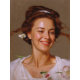 "Petal Pride" Margaret - Art & Floral Society. Margaret ist eine Schoollehrerin und hat eine Kaskade von Blüten, die ihr Gesicht umrahmt, zeigt eine Frau, die eindeutig stolz auf ihre blumigen Leistungen ist, auch wenn sie ein wenig absurd erscheinen, eingefangen in dem stilisierten humorvollen Aquarellbild.