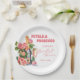 Petalen und Prosecco Flaschen und Rose Brautparty Pappteller