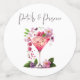 Elegante Gartenfarben mit Champagnergläsern, Berries und Text "Petals and Prosecco" Blumenmotive Brautparty Confetti in Lila, Lavendel, Rosa, Pfirsich, Aprikose und Grüntönen.