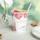Petals und Prosecco Thema Brautparty maßgeschneiderte Papiertassen mit handgemalten Aquarell-Blume und Schriftzeichen. Entwickelt und illustriert mit Liebe von Kristine Lee www.kristineleedesigns.com