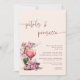 Elegante Kalligraphie "Petals & Prosecco Brautparty rot Rosa Blumen und Glas Einladung.