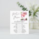 Elegante Garden Blume mit Champagner-Glas, Berries und Text "Petals and Prosecco" floral themed Brautparty Game Card Wäre sie Rather? über die Bride in lila, lavender, rot pink, pfirsichfarben, aprikot und grüne Farben.