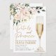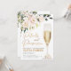Petals und Prosecco Bridal Dusche Die Einladung beinhaltet rötlich-rosa Blumen, Goldtext und Champagner Glas mit Schaumgetränk.