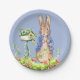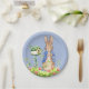 Peter der Rabbit in seinem Garten überprüft sein Vogelhaus.