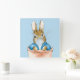Peter der Rabbit bläst ein blaues Blasen-Kaugummi Quadratische Wanduhr