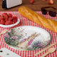 Peter der Rabbit Pink Jacket in seinem Garten Pappteller