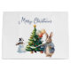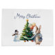 Peter the Rabbit mit Ballons und einem Weihnachtsbaum und Schneemann Frohe Weihnachten Gruß
