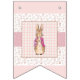 Peter the Rabbit mit rosa Jacke und Karo-Muster-Hintergrund