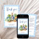 Peter Kaninchen mit einer blauen Jacke und Gartengemüse Baby Dusche danke Karte bearbeitbaren Vorlage sofortigen digitalen Download. Ein niedlicher Hase in einer blauen Jacke stehend im Veggie-Garten für einen Baby Duschkopf pastellblau Gingham Dankeschön Karten