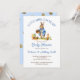 Peter Kaninchen mit Eicheln fallen Baby Dusche Vorlage Einladung digitalen Sofortdownload. Ein niedlicher Hasen in einer blauen Jacke mit Korbkorbkorbensäcken und Eichen-Blätter für eine Babydusche