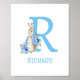 Watercolor Peter Rabbit Blue Baby Name Poster. Matching-Elemente verfügbar.