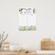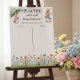 Peter Rabbit inspired gender reveal voting game poster. The design features two adorable watercolor bunnies, one in a blue jacket and the other in a pink coat, surrounded by a country flower garden. Guests can cast their vote for "Girl" or "Boy" by writing their name in the designated columns, creating a fun and interactive way to guess the baby's gender. This he or she guessing game poster not only entertains but also serves as a substantial piece of themed decor for your event.