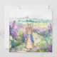 Peter der Kaninchen mit einem Aquarellfeld aus Lilakteen und wilden Blume.