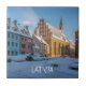 Panoramaaussicht auf die Peterskirche und im Winter in der Altstadt von Riga, Lettland umliegende historische Gebäude.