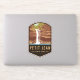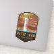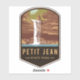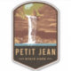 A vintage style park badge design of Petit Jean State Park with Cedar Falls in Conway County atop Petit Jean Mountain adjacent to the Arkansas River in Arkansas United States.