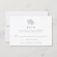 Diese elegante RSVP-Gartenkarte wurde entworfen, um sich mit unserer Blumenzellensammlung Petite Bouquet in Lilac abzustimmen. Sie bietet eine winzige Aquarellblüte mit lila Rose und grünen Blätter. Fügen Sie Ihre UAWG, einschließlich des gewünschten Datums und des gewünschten Akzepts/Ablehnungstextes, in eleganter grauer Schrift hinzu.