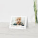 Petite Elegant Gold Script Baby Foto Danke Karte. Das Interieur umfasst eine Familienbotschaft und ein zweites Foto. Klicken Sie auf die Schaltfläche Bearbeiten, um dieses Design mit Ihren Fotos und Details anzupassen.