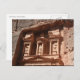 Postkarte des Schatzamtes ("Al Khazneh") in Petra, Jordanien. Petra (Griechisch "Κύπρα" (Petra), was Rock bedeutet; Arabisch: ا ب ا ء, Al-Batrā-Zauber) ist eine historische und archäologische Stadt im jordanischen Gouvernement von Ma'an, die über eine Felsschnitt-Architektur und ein Wasserleitungssystem verfügt. Jh. v. Chr. als die Hauptstadt der Nabatäer gegründet, ist es ein Symbol Jordaniens und seine meistbesuchte touristische Attraktion. Al Khazneh ("Das Finanzministerium"; Arabisch: ا ل خ ز ة ) ist eines der aufwändigsten Gebäude in der antiken jordanischen Stadt Petra. Wie die meisten anderen Gebäude dieser antiken Stadt wurde auch dieses Gebäude aus einem Sandsteingeflecht geschnitzt. Es hat eine klassische griechisch geprägte Architektur und ist eine beliebte Touristenattraktion. Vollständig anpassbare Postkarte.