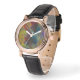 Uhr, Klassische Damenuhr mit schwarzen Lederarmband