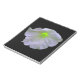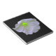 Dieses phantastische Notizblock zeigt ein Foto einer Petunia-Blume, die so bearbeitet wurde, dass die Mitte der Blume hell grün leuchtet. Die äußeren Blütenblätter sind weiß, und die Adern, die aus der Mitte der Blume herauslaufen, leuchten auch grün. Die Blume ist auf schwarzem Hintergrund, um sie zu stimulieren.