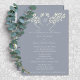 Eine moderne Hochzeitskarte mit einer Lebensgrafik. Eine Tischnummer, die sich auf der Hochzeit befindet. Zwei Baumzweige verwoben mit blassgelben Blätter auf einem mittelgrauen Hintergrund, um sich mit einem Monogramm anzupassen.
