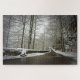 Mit diesem Bild vom Schloss Neuschwanstein von einem der Pfade, die in den traumhaften deutschen Winterwald führen, stellen Sie Ihr Rätselfertigkeit in Frage.