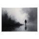 Eine Einzelfigur führt durch den Nebel, gespiegelt in einer stillen Wasseroberfläche. Die Dunkelheit der Bäume und der dicke Rauch rufen Mysterium und Introspektion hervor, als würde jeder Schritt in die unbekannten Tiefen des Souls führen.