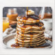 Große Pancakes mit Tropfsirup und einem Stück Butter