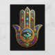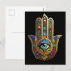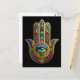 Pfau Farbige Blütenblätter Hamsa Grün Drittes Auge Postkarte