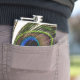 MakroFoto einer Pfaufeder auf einem weißen Hintergrund.