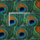 Dieses Gewohnheitsgewebe kennzeichnet ein wiederholendes Muster der Pfaufedern in den natürlichen Schatten des goldenen Tan, des Aqua, des aquamarinen, des Grünen, Marine, Lila und Schwarzes. Ein Gewebe für das Herstellen des themed Handwerks der Pfaufeder, der Steppdecken, der Moden der Kleidungs, der Hochzeit und des speziellen Ereignisses und des Partydekors. Führen Sie Ihren inneren Pfau vor, indem Sie einen großen Entwurf mit diesem stilvollen Gewebe schaffen.