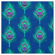 Pfau-Federn, Aqua auf tiefem Kobalt-Blau Stoff