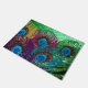 Ein Regenbogen von Pfauenfedern vor grünem Hintergrund. Das Design Leben.