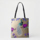 Ein farbenfroher Pfau liegt auf einem Ast mit lebhaften Blume. Der Hintergrund zeichnet sich durch einen goldenen Ton mit texturierten Details aus, der die Eleganz der Szene insgesamt unterstreicht.