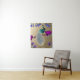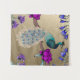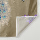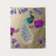 Ein farbenfroher Pfau liegt auf einem Ast mit lebhaften Blume. Der Hintergrund zeichnet sich durch einen goldenen Ton mit texturierten Details aus, der die Eleganz der Szene insgesamt unterstreicht.