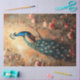 Ein anmutiges und elegantes Gemälde mit einem majestätischen Pfau, der mit strahlend blauen und grünen Federn geschmückt ist und wunderschön kontrastiert wird von zarten, rosa Rosen. Der Pfauensturz zieht sich in feine Details, schimmert mit Goldtönen und aquamarin, während die sanften, romantischen Rose durch die Szene weben und eine Touch Vintagen Charmes hinzufügen.