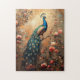 Pfau mit rosa Rosenmalerei Puzzle