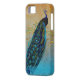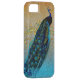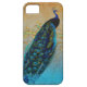 Ein heller und wunderschöner türkisfarbener Pfau mit goldenem filigranem Hintergrund. Die Hauptfarben sind Türkis und Gold.