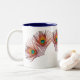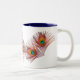 Pfau versieht Tasse mit Federn