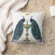 Kobaltblau- und -GELBpfaus auf einem Goldbrunnen-Wurfskissen. Elegant für irgendeinen Raum - Wohnzimmer, Wohnzimmer, Schlafzimmer, Sonneportal - möglicherweise auf einem Portalschwingen? Überstiegen mit einer goldenen Krone.